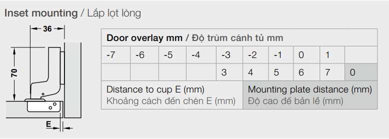 Lắp đặt: Lắp vào cửa và tủ với bằng cơ cấu nhấn SM