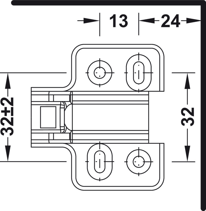 H=0 Đế bản lề với 4 lỗ bắt vít