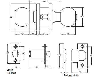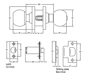Trọn bộ gồm: 1 khoá tay nắm tròn, 1 cò khóa , 1 bas khoá, 3 chìa khóa (chỉ dành cho cửa chính), 1 bộ gồm vít, 1 Hướng dẫn lắp đặt
