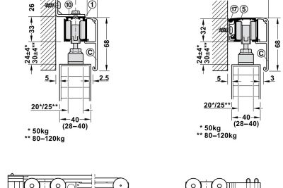 - Dành cho cửa trượt gỗ 1 cánh và 2 cánh