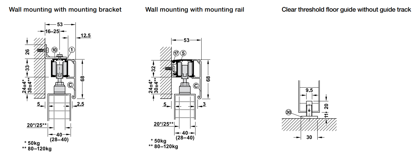- Dành cho cửa trượt gỗ 1 cánh và 2 cánh